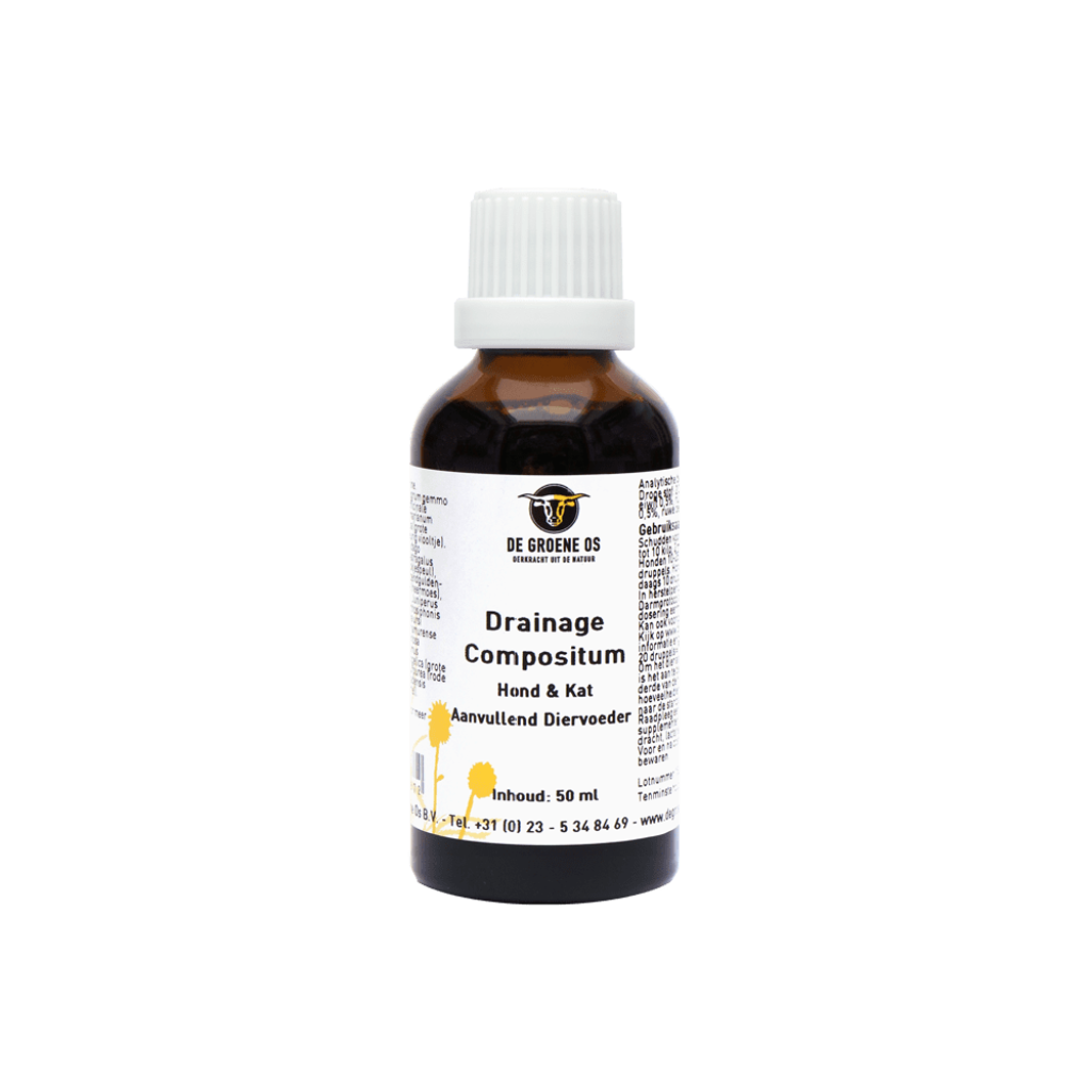 Dat geldt ook voor operaties: geef Drainage Compositum niet vlak voor een operatie, maar wacht tot het dier van de ingreep is bijgekomen. Zet het middel pas in nadat het dier zijn basisenergie heeft kunnen herstellen. Drainage Compositum kan dan helpen de ballaststoffen, afkomstig van de narcose, uit te scheiden.