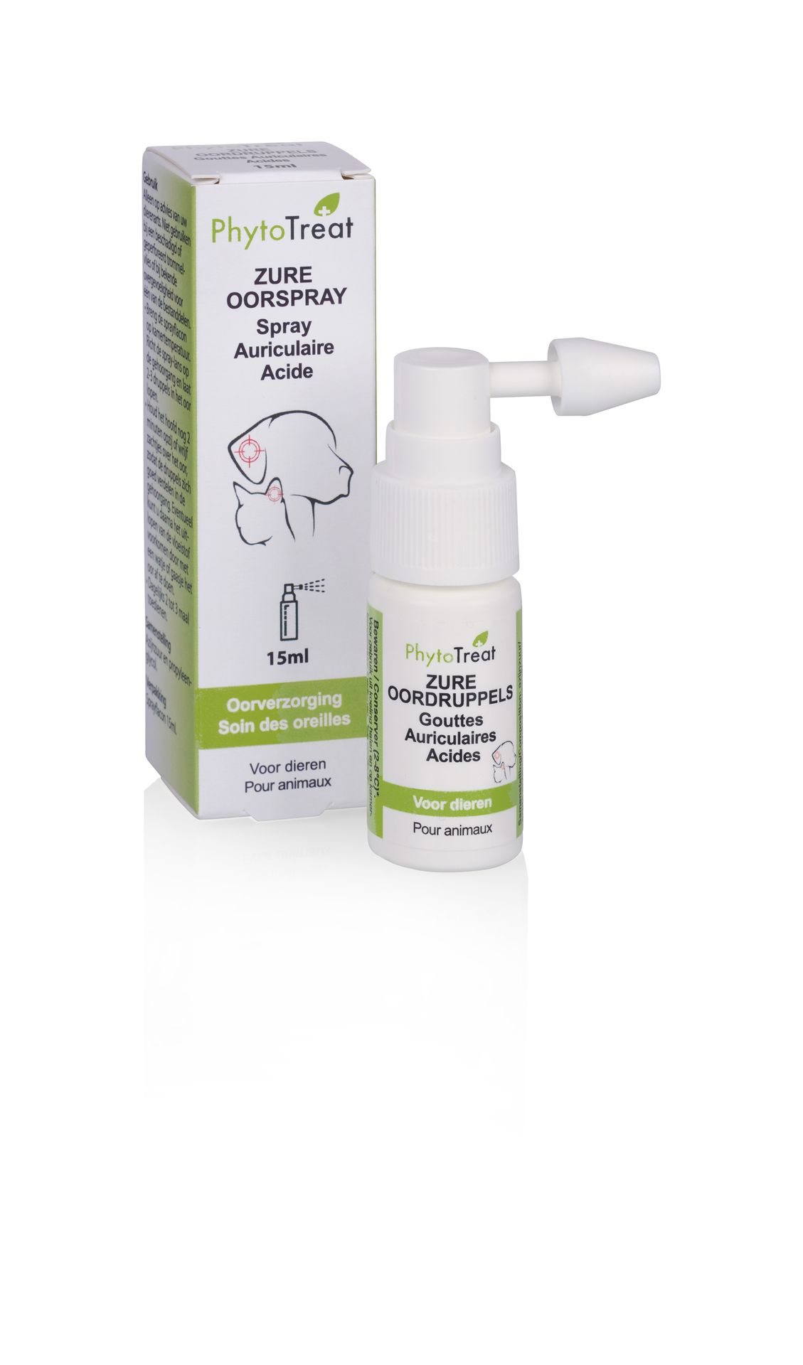 Zorg dat de druppelaar of spraykop zo min mogelijk met het oor in aanraking komt, omdat