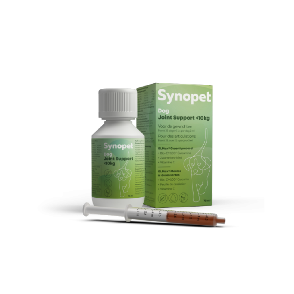 Om de gewrichten van je hond in goede conditie te houden, kan na de boost dagelijks een onderhoudsdosering worden gegeven. De helft van de reguliere dosering is dan over het algemeen voldoende. Dog Joint Support is heel eenvoudig te geven vanuit het handige doseerspuitje of direct over het voer. Er is geen extra smaak aan toegevoegd. Zo is het mogelijk om de favoriete smaak of structuur toe te voegen. Synopet is veilig en vertrouwd bij dagelijks gebruik. Synopet supplementen zijn proefdier en dopingvrij.